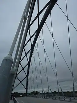 A network arch bridge is a tied arch bridge with inclined hangers that cross each other at least twice.