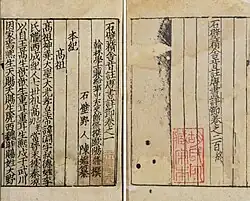 2. ^ From a description by Wang Yingling, in his Yuhai (玉海)