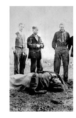 The second robbery occurred on April 7, 1914, already a red letter day for the area as the last spike of the Grand Trunk Pacific Railway was being driven 180 miles away in Fort Fraser. New Hazelton was a busy little town that morning and excitement was high over the completion of the railroad. Many residents and some visiting dignitaries were planning on taking the train to Fort Fraser to watch the ceremonies associated with the driving of the last spike. John Oliver, who would one day become premier and have the town of Oliver named after him, was one of the visitors on that historic day. Little did anyone know that an equally historic event was about to happen right there in New Hazelton, one that would be remembered in hundreds of Canadian history books. Luckily, someone was there with a camera. Those pictures would become among the most famous of that era in British Columbia.