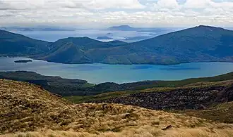 Ngāti Maru made an alliance with the local people of the western shore of the lake, sealed by the marriage of the local woman, Hinehoro, to Te Awhi of Ngāti Maru.[9] They then secretly gathered as many canoes as they could.[9] According to the descendants of Te Wharerangi, the canoes were secretly delivered by one of the local rangatira, Te Huiatahi, who belonged to the Ngāti Waewae hapū of Tūwharetoa and was hostile to Te Wharerangi.[10] Ngāti Waewae tradition strongly denies this.[11] Some descendants of Te Wharerangi also claim that Te Heuheu had told Ngāti Maru about the weaknesses of Motu-o-puhi's fortifications, because Te Wharerangi had refused to let Te Heuheu marry his daughter.[12] Once Ngāti Maru had enough canoes, they set out at dawn, attacked Motu-o-puhi from the water, and easily seized the village, thanks especially to their gun.[5][9][13] Ngāti Maru lost two chiefs, Te kauauau and Taitanguru, while Pahupahu was killed on the Motu-o-puhi side.[5] Many of the inhabitants of Motu-o-puhi were killed, but Te Wharerangi’s brother Hokopakeke Te Huri managed to get many of the women and children, including Te Wharerangi’s wife, Te Rangikoaea, his young son, Matuāhu Nini, and his daughter Te Māri, to the Manganuioteao River, where their Ngāti Uenuku relatives lived.[9][7][14]