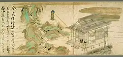 Furthermore, during the Later Heian (950–1185), various itinerant ascetics and preachers traveled the country promoting the simple recitation of the nembutsu. These holy people (hijiri) who were also called shōnin, were mostly independent of major Buddhist institutions.[57] The most well known of these figures was Kūya (903–972), who wandered throughout the provinces preaching on nembutsu practice.[58]