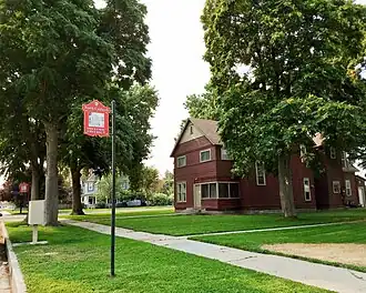 ![]() At right is Blatchley House (1889), home of Henry and Carrie Gwinn Blatchley, early supporters of the College of Idaho. The Blatchleys later built a larger home, Blatchley Hall (1910), on what is now the campus of the College of Idaho. At left is the John P. Johnson House (1890). | |
