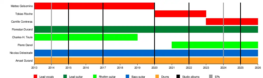 - Nicolas Delestrade – bass, backing vocals (2013–present)