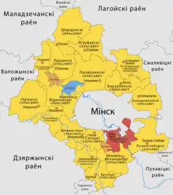 The populations are from the 2009 Belarusian census (14179 total) and 2019 Belarusian census (18396 total)[2]
