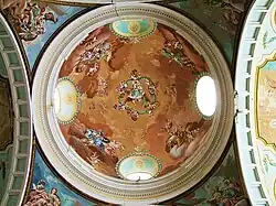 The interior walls were decorated from 1770 to 1780 by Manuel Bayeu, including a total of 250 frescoes featuring brilliant colors. The paintings depict scenes from the Gospels and lives of saints, apostles and other religious themes.