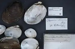 - ^ a b Bucholz, Jamie R.; Sard, Nicholas M.; VanTassel, Nichelle M.; Lozier, Jeffrey D.; Morris, Todd J.; Paquet, Annie; Zanatta, David T. (2022-01-26). "RAD-tag and mitochondrial DNA sequencing reveal the genetic structure of a widespread and regionally imperiled freshwater mussel, Obovaria olivaria (Bivalvia: Unionidae)". Ecology and Evolution. 12 (1): e8560. doi:10.1002/ece3.8560. ISSN 2045-7758. PMC 8794720. PMID 35127054.