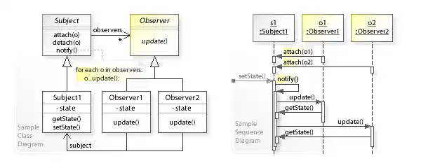 - ^ "The Observer design pattern - Structure and Collaboration". w3sDesign.com. Retrieved 2017-08-12.