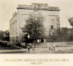 In 1847 the disgruntled faculty members started the Willoughby Medical College of Columbus in Columbus, Ohio, receiving a new charter from the Ohio Legislature on January 14, 1847. The inaugural student body consisted of 150 students, including dozens of medical students who had transferred from Willoughby University of Lake Erie.[2] Almost immediately upon opening, the school was contacted by wealthy local business owner Lyne Starling, who offered $35,000 to construct a new hospital and school complex in Columbus. The concept of a hospital dedicated to teaching medical students was groundbreaking at the time.[2]