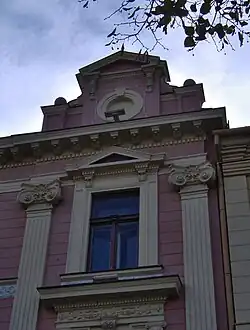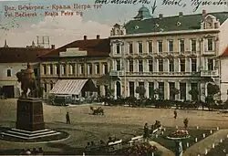 Hotel "Rózsa" was built in 1886 by the projects of Ferenc Pelzl,[1] in neorenaissance. It has two floors and a back yard to the Begej river. After 1918 hotel was renamed to "Vojvodina" and was the best hotel in Veliki Bečkerek. Hotel stayed in this building until 1972, when a new building was built just beside the old building.[2]