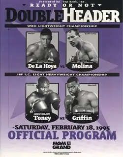- ^ a b c Chris Dufresne (19 February 1995). "Judges Agree: De La Hoya Gets Decision Over Molina : Boxing: Winner gets some useful lessons in grueling 12-round bout, looks ahead to Ruelas. Griffin upsets Toney in battle of light-heavyweights". Los Angeles Times. Las Vegas. Retrieved 9 December 2024.