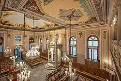 Educational and technological reforms came about, including the establishment of higher education institutions such as the Istanbul Technical University.[111] In 1734 an artillery school was established to impart Western-style artillery methods, but the Islamic clergy successfully objected under the grounds of theodicy.[112] In 1754 the artillery school was reopened on a semi-secret basis.[112] In 1726, Ibrahim Muteferrika convinced the Grand Vizier Nevşehirli Damat Ibrahim Pasha, the Grand Mufti, and the clergy on the efficiency of the printing press, and Muteferrika was later granted by Sultan Ahmed III permission to publish non-religious books (despite opposition from some calligraphers and religious leaders).[113] Muteferrika's press published its first book in 1729 and, by 1743, issued 17 works in 23 volumes, each having between 500 and 1,000 copies.[113][114]