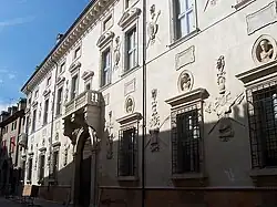 The Palazzo Bevilacqua-Costabili is a Renaissance palace located on Via Voltapaletto 11 in central Ferrara, Region of Emilia-Romagna, Italy. It should not be confused with the Palazzo Bevilacqua in Verona (begun 1529), designed by Michele Sanmicheli.