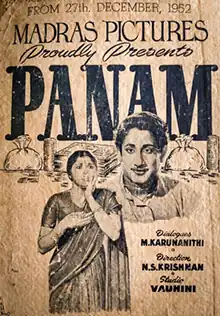 Panam (transl. Money)[1] is a 1952 Indian Tamil-language film, directed by N. S. Krishnan and written by M. Karunanidhi from a story by N. V. Babu. The film stars Sivaji Ganesan, N. S. Krishnan, B. R. Panthulu and Padmini. It was also the first of the many collbaborations between Ganesan and Padmini.[2][3][4]