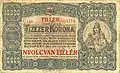 The paper money of the Hungarian korona was part of the circulating currency in the post-World War I Kingdom of Hungary until the introduction of the pengő in 1927. The variety of the banknotes and treasury notes and the variety of issuing authorities reflect the chaotic postwar situation in the country.