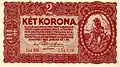 After the World War, the Hungarian Károlyi government requested the Austro-Hungarian Bank to deliver printing plates and banknote paper to Hungary, since it would have been too dangerous to deliver printed banknotes due to the political uncertainty. The banknotes (1, 2, 25 and 200 crowns) printed in Budapest under the Károlyi government and then under the Hungarian Soviet Republic were distinguished with a different serial number (1 K: higher than 7000; 2 K: higher than 7000; 25 K: higher than 3000; 200 K: higher than 2000). After the fall of the Soviet Republic, Vienna declared these banknotes to be counterfeits.