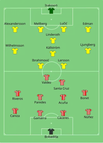 In their return to the World Cup, Paraguay faced Sweden and Italy in Group 3. Paraguay failed to advance to the next round after a 2–2 draw against Sweden and a 2–0 loss against Italy.