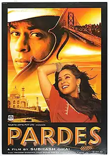 Pardes (transl. Foreign land) is a 1997 Indian Hindi-language musical romance film directed, produced, and co-written by Subhash Ghai under his banner Mukta Arts. It stars Shah Rukh Khan, and newcomers Mahima Chaudhry and Apurva Agnihotri in lead roles, with Alok Nath, Amrish Puri and Himani Shivpuri in supporting roles. The film was shot at various locations in the United States (Los Angeles, Las Vegas), Canada (British Columbia, including Vancouver) and India (Uttarakhand and Uttar Pradesh, including Agra).