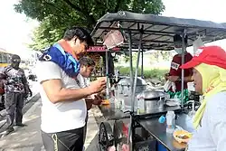 Another variation of the dish, informally known as pares kariton ("pushcart pares") or pares kanto ("street corner pares") for being served on the roadside by mobile sidecar vendors, serves the beef and broth combined, usually with the broth slightly thickened by cornstarch.[9] This variant is less sweeter and has less spices compared to the beef asado variant but is more savory due to the use of beef tendons (litid), bone marrow (utak ng buto), and fatty cuts of beef.[10]