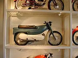 Parilla was an Italian motorcycle manufacturing company. It was founded in 1946 by Giovanni Parrilla, who dropped an 'R' in his name for the company title. He began by designing, building and racing a 248cc single cylinder, ohc motorcycle, which he modified to take a dohc.[1] After this, he produced a variety of road bikes with; 98cc, 125cc and 250cc engines. In 1952 motorcycle designer Soncini was appointed and improved the range of motorcycles available. In the early 60s Parrilla experimented with a 125cc rotary-valve two-stroke attached to a 5-speed gearbox, but this project was abandoned and the company folded in 1967.[2]