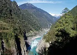 ![]() Parlung Tsangpo, just below the confluence of the tributary, Lhayue Chu (拉月曲), followed by China National Highway 318 | |