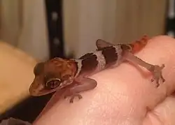 A 10-gallon tank can be used to house a single individual, or pair during the breeding season. The temperatures in the terrarium should be 85–90 °F (29–32 °C) on the hot spot and 70–75 °F (21–24 °C) on the cool side. Heavy misting in the morning and afternoon is appropriate for proper hydration. An average humidity peak of 80-90% when misting with a mid-day low of 45-50% works well.[4] Substrate can consist of peatmoss mix with potting soil or sand. Several cork pieces should be made available as these geckos are quite shy. Females lay eggs two at a time and these can be hatched at 80F and 80% humidity. Eggs hatch between 90 and 100 days.