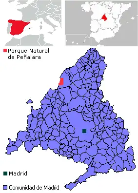 The Peñalara Natural Park (Spanish: Parque Natural de la Cumbre, Circo y Lagunas de Peñalara) is a natural park of 7.68 km2 in the northwest of the Community of Madrid, Spain. It was designated in June 1990. The park is situated in the central zone of the Sierra de Guadarrama (part of the mountainous axis called the Central System). Since 2013, the Sierra de Guadarrama has also been protected by a national park designation.