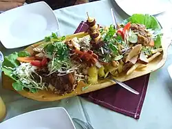 Fatányéros, also called Hungarian mixed grill,[1] is a traditional Hungarian mixed meat barbecue dish (or pecsenye in Hungarian), originating from Transylvania.