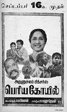 - ^ "1958 – பெரிய கோவில் – அருணாச்சலம் பிக்சர்ஸ்" [1958 – Peria Koil – Arunachalam Pictures.]. Lakshman Sruthi (in Tamil). Archived from the original on 2 March 2018. Retrieved 2 March 2018.