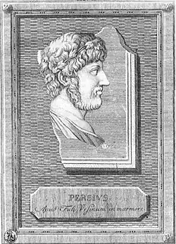 Aulus Persius Flaccus (/ˈpɜːrʃiəs, ˈpɜːrʃəs/; 4 December 34 – 24 November 62 AD) was a Roman poet and satirist of Etruscan origin. In his works, poems and satire, he shows a Stoic wisdom and a strong criticism for what he considered to be the stylistic abuses of his poetic contemporaries. His works, which became very popular in the Middle Ages, were published after his death by his friend and mentor, the Stoic philosopher Lucius Annaeus Cornutus.