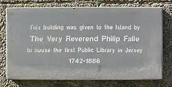 In 1736 he presented to his fellow-islanders his collection of books. With another donation by Canon Dumaresq (died 1805), this benefaction developed into a large library, for which the States provided a building in Saint Helier.