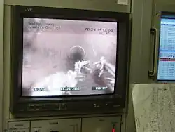 Sometimes referred to as a PIG (pipeline inspection gauge), the camera and lights are mounted in a swivelling head attached to a cylindrical body. The camera head can pan and tilt remotely. Integrated into the camera head are lighting devices, typically LEDs, for illuminating the pipeline. The camera is connected to display equipment via a long cable wound upon a winch. Some companies, such as Rausch Electronics USA, incorporate a series of lasers in the camera to accurately measure the pipe diameter and other data.