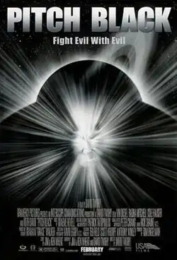 Pitch Black (titled The Chronicles of Riddick: Pitch Black on later re-releases) is a 2000 American science fiction horror film[4][5] directed by David Twohy and co-written by Twohy and brothers Ken and Jim Wheat from a story conceived by the latter. The film stars Vin Diesel, Radha Mitchell, Cole Hauser, Claudia Black and Keith David. Dangerous criminal Riddick (Diesel) is being transported to prison in a spacecraft, and escapes when the spaceship is damaged by comet debris and crash lands on an empty desert planet. When predatory creatures begin attacking the survivors, Riddick joins forces with them to escape the planet.