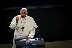 - Pope Francis made a four-hour visit, the shortest made by any pope abroad, to Strasbourg on 25 November 2014, where he addressed the European Parliament and the Council of Europe raising issues such as the dignified treatment of immigrants arriving illegally in Europe and better conditions for workers.[20]