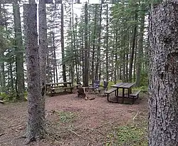 - Saginas Lake Recreation Site (52°30′36″N 102°13′44″W / 52.5101°N 102.2288°W)[14] is located on the north-eastern corner of Saginas Lake, right beside Pepaw River. Highway 982 runs along the east side of the site. The site features a small campground, dock, fish cleaning station, beach, and washrooms.[15] It was formally part of Hudson Bay Regional Park.[16][17]