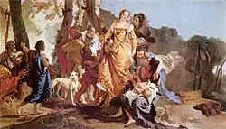God tells the Israelites to camp between Migdol and the sea. Pharaoh continues his pursuit. The Israelites see the Egyptians approaching and become frightened, but God commands Moses to stretch out his staff and divide the sea. The angel of God and the pillar of cloud move between the Israelites and the Egyptians, separating them. God sends a strong east wind and the Israelites enter the sea on dry ground, the water like a wall on the right and left. The Egyptians follow, but God commands Moses to stretch out his staff again, and the waters return, covering the chariots and horsemen. The people fear the LORD and have faith in Moses.