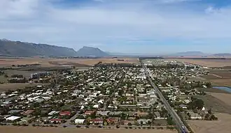 The town is located at the foot of the Olifants River Mountains, 27 km south-east of Piketberg and 155 km north-east of Cape Town. It is situated 140 km north of Cape Town on R44 road at the base of the Olifants River mountains. The Dasklip Pass to the surrounding Groot Winterhoek mountains is located 14 km outside of the town. The Soom Shale, a notable deposit of Late Ordovician period fossils, is located near the town. Agriculture in the area is dominated by wheat production. The closest towns are Piketberg to the west, Saron to the south, and Eendekuil and Citrusdal to the north.