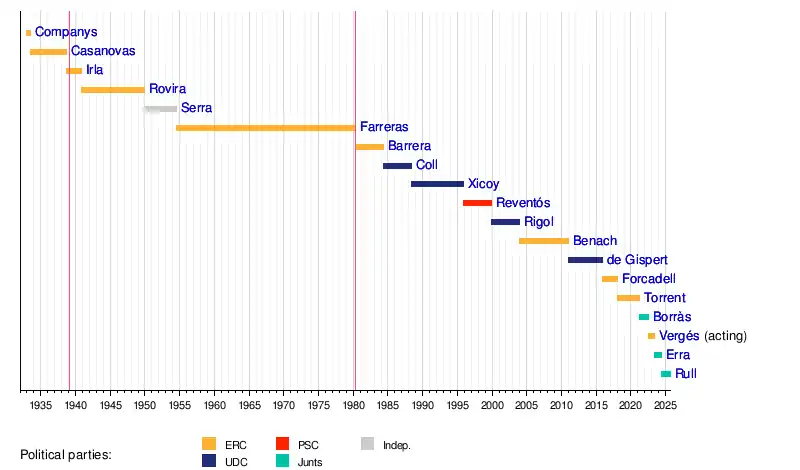 3 Josep Irla ERC 18 August 1938 15 October 1940