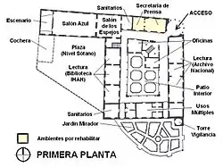 In 1883 the president of Honduras, the General Luis Bográn, decided that the busy house by the Plaza de la Merced was not suitable enough, and moved the offices to another building, which was to the right of the session hall of the National Congress. This building had stone foundations, walls made out of adobe, and wide living rooms for the governmental administration, decorated with the national banner, pavilion, shields, and paintings of the national heroes. It also had a part allocated for the guard or presidential escort, which would later become the School of Capes and Sergeants.