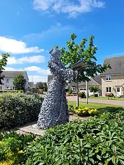 A war memorial, which commemorates the lives of local service personnel who died in the First World War, Second World War and the Spanish Civil War, stands near the town centre but is slightly obscured by the flanking buildings. It takes the form of a Scottish soldier in a Tam o' Shanter bonnet and greatcoat sculpted by William Birnie Rhind in 1921.[9]