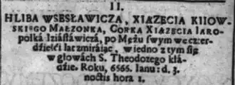 - ^ Raffensperger (2024) slightly updated Heinrich's spelling: "In that same year the blessed princess [kniaginia], Gleb Vseslavich's wife, daughter of Iaropolk Iziaslavich, who had been ruling forty years in the place of her prince [kniaz'] as a widow, died."[12]