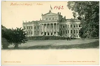 In 1810, Wilhelm Malte founded the town of Putbus next to the palace, and developed it into a luxury seaside resort like Bad Doberan and Heiligendamm.[1] It opened in 1816. The city was designed in neoclassical style and became known as the "White Town" (German: Weiße Stadt).