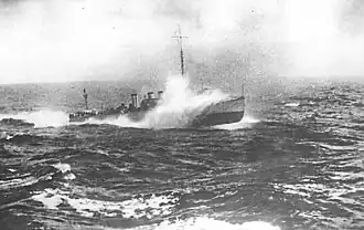 The Ragnar-class destroyer was an improved version of the preceding Wale.[1] The ships normally displaced 350 long tons (360 t) and 416 long tons (423 t) at full load. They measured 66.1 meters (216 ft 10 in) long overall with a beam of 6.3 meters (20 ft 8 in), and a draft of 1.8 meters (5 ft 11 in). The Ragnars were propelled by two 4-cylinder vertical triple-expansion steam enginess, each driving one three-bladed propeller using steam from four Yarrow boilers. The engines were designed to produce a total of 7,200 indicated horsepower (5,400 kW) for an intended maximum speed of 30 knots (56 km/h; 35 mph). On Vidar's sea trials, she reached 31.3 knots (58.0 km/h; 36.0 mph). The ships carried enough coal to give them a range of 1,400 nautical miles (2,600 km; 1,600 mi) at 12 knots (22 km/h; 14 mph). The ships' crew numbered 69.[2][3]