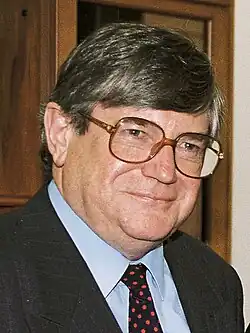 Raphael Patrick Burke (born 30 September 1943) is an Irish former Fianna Fáil politician who served as Minister for Foreign Affairs from June 1997 to October 1997, Minister for Justice from 1989 to 1992, Minister for Communications from 1987 to 1991, Minister for Industry and Commerce from 1988 to 1989, Minister for Energy from 1987 to 1988, Minister for the Environment from March 1982 to December 1982 and 1980 to 1981 and Minister of State at the Department of Industry, Commerce and Energy from 1979 to 1980. He served as a Teachta Dála (TD) from 1973 to 1997.[1]