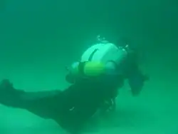 Rebreather diving is underwater diving using diving rebreathers, a class of underwater breathing apparatus which recirculates the breathing gas exhaled by the diver after replacing the oxygen used and removing the carbon dioxide metabolic product. Rebreather diving is practiced by recreational, military and scientific divers in applications where it has advantages over open circuit scuba, and surface supply of breathing gas is impracticable. The main advantages of rebreather diving are extended gas endurance, low noise levels, and lack of bubbles.[1]