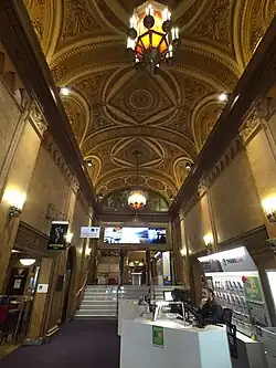 The mezzanine foyer of the Regent Theatre with its high-vaulted ceiling