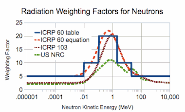 | neutrons (< 1 MeV) | 2.5 + 18.2e-[ln(E)]2/6 |