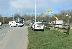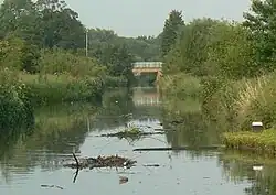 The River Ribble and the Savick Brook Ribble Link are subject to outfall from a number of sources, including the Springfields nuclear fuel production facility at Salwick, to the north of Savick Bridge. A research project by the University of Portsmouth was carried out to test low cost tools for measuring water quality, with one of the pilot studies carried out on the Ribble. This was known to have failed to meet Environmental Quality Standards, due to the presence of heavy metals, organic compounds and organo-metallic compounds. The Environment Agency take samples from the estuary once a month to monitor the water quality, but the research project took samples from many more monitoring points including on the Ribble Link.[66] Research carried out in 2006 looked at the effects of radioactive discharges from the Springfields site on those working, living or finding recreation in the locality. The site produced fuel for Magnox reactors, pressurised water reactors and advanced gas-cooled reactors at the time of the survey, although the production of Maxnox fuel ceased in 2007. Radionuclides are discharged to the air and in liquids into the environment, with levels of radionuclides dropping significantly since Maxnox fuel production stopped. At the time the site was owned by the Nuclear Decommissioning Authority, and operated by Springfield Fuels Ltd Westinghouse.[67] The Ribble Link between the sea lock and lock 8 was studied as part of the aquatic survey.[68] Sediments dredged from this section during construction were used to landscape the north-west bank of the brook, and these were tested for beta emissions.[69] The report recommended that testing for beta and gamma dose rates could be introduced on the section of the Ribble Link below the sea lock, where beta dose rates were found to be relatively high.[70]