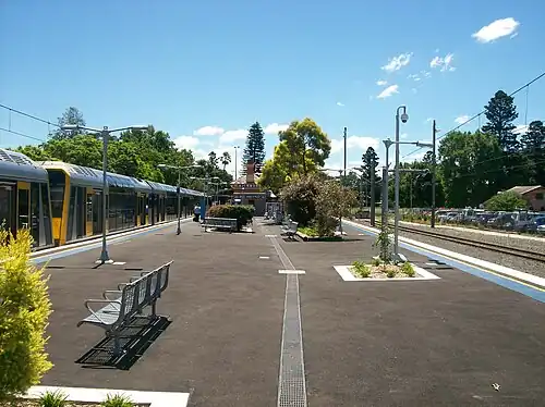 As part of the electrification of the line from Riverstone in 1991, the yard was remodeled with the current train storage sidings laid on the northern side of the station and removal of tracks from the southern side.[5][6] In 1996 all rooms to the station building were internally altered, except the General Waiting Room. Externally, the building is largely unaltered.[3]