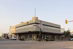 Adilman Building, August 2024Adilman Building (1912/1949) – Adilman's Department Store was a cornerstone of the 20th Street shopping district from its opening in 1921 until it closed in 1974. The present structure is the result of a 1949 renovation, though the building's core dates to 1912. It is one of Saskatoon's examples of Streamline Moderne architecture. Since the department store closed, it has been home to an antique store, farmer's market, and bingo hall. In 2014 Freedom Functional Fitness, an unconventional fitness gym moved into the building. Currently, it houses Anthology Home Collection, a high-end home décor shop.[23][24]