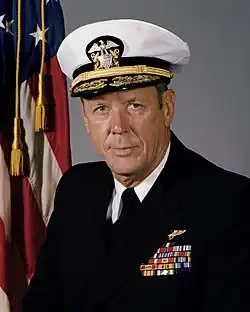 From March 27, 1962 to March 2, 1963,[6] Schoultz served as commanding officer of VA-93 deployed on the carrier Ranger. He later served as executive officer of the carrier Franklin D. Roosevelt.[2] Schoultz was given command of the attack cargo ship Arneb from December 20, 1969 to January 1971[7] and the carrier Forrestal from June 23, 1971 to November 1, 1972.[8] He was on staff duty and professional education in 1973-77,[2] then from April 1977 to July 1979[2] was commander of Carrier Group Two assigned to the United States Sixth Fleet.[3] Following this he had a brief tour on the OPNAV staff before becoming Commander, Naval Air Force, US Pacific Fleet, in January 1980. In 1983 he became Deputy Chief of Naval Operations (Air Warfare), then from February 1, 1985 until his retirement in 1987 was US Commander Eastern Atlantic and Deputy Commander in Chief US Naval Forces, Europe.[2]